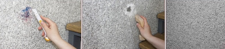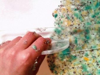 Si, en cours de fonctionnement, une tache graisseuse ou une contamination apparaît à la surface du mur, il est possible d'effectuer des corrections rapidement et sans effort. Pour ce faire, prenez le reste du mélange, diluez-le avec de l’eau tiède pour obtenir une consistance pâteuse et mettez de côté, ramollissez-vous, et retirez l’ancien revêtement.