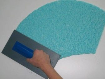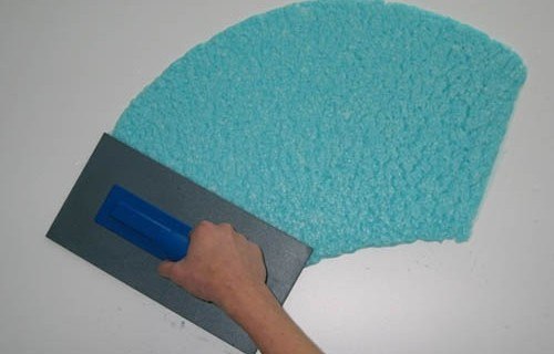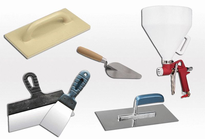 Vous ne devez pas acheter tous les outils: si l’avion à traiter est grand, vous devez choisir un pistolet de pulvérisation, après avoir choisi une grande buse. Lors de la décoration des murs avec un matériau unicolore, il est plus facile d'utiliser un rouleau à peinture. Si vous envisagez de décorer la surface de différentes couleurs, l'outil de travail principal sera une spatule.