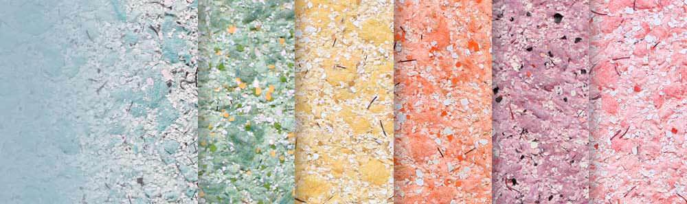 La masse de papier peint liquide est unique en ce sens qu’elle permet un changement de couleur, l’addition de différentes inclusions, qui peuvent être achetées séparément afin de donner à la texture de l’individualité.