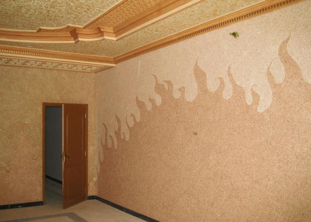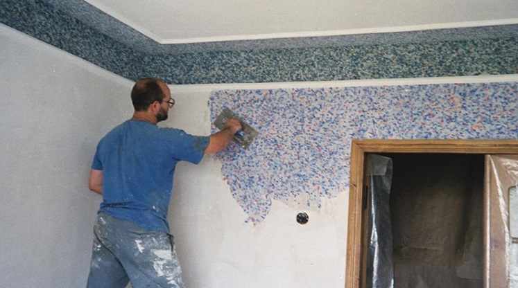 Ce type de finition est unique en ce sens qu'il peut être collé de différentes manières. Les variantes de l'application de la masse dépendent des idées de l'auteur.