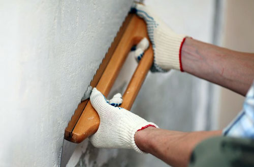 - le matériau est appliqué uniformément sur la surface des murs, sans dépasser l'épaisseur de couche de 2 à 3 mm, en remplissant étroitement toutes les zones de la base, de manière à ce qu'il ne brille pas à travers le revêtement;