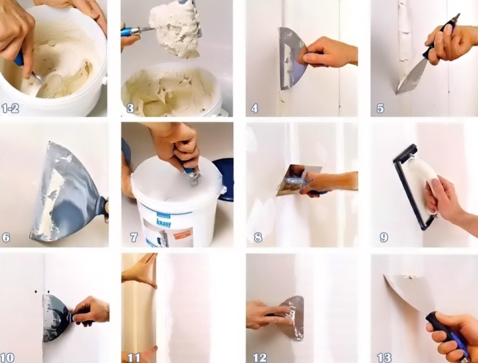 - après cela, la surface est ramenée au niveau, éliminant ainsi les pentes visibles et les irrégularités des murs, réduisant ainsi la consommation de matériau d'alignement (si le trou est grand, il peut éventuellement différer en couleur);