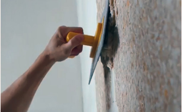 - Initialement, la surface est éliminée des anciens revêtements muraux, ce qui élimine tout ce qui peut se décoller par la suite.