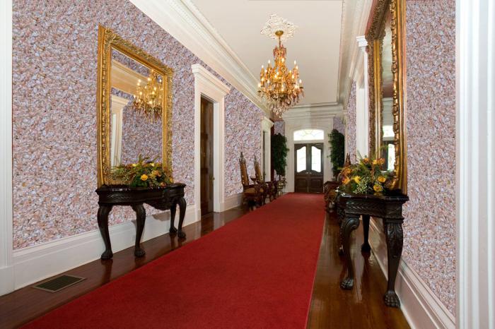 - De la soie - le papier peint, qui contient des fibres de soie, qui modifie la perception esthétique du fini (papier peint durable et magnifique, résistant à la lumière du soleil);