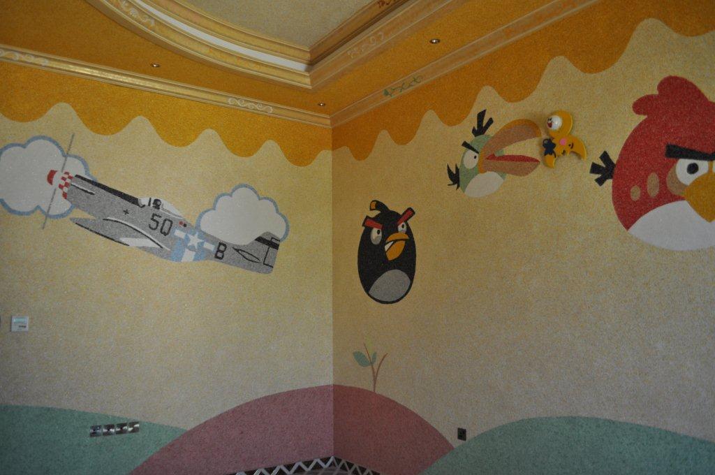 Comme le papier peint situé à proximité ne donne pas de contours nets, les dessins sont souvent grands, ce qui réduit la surface utilisable et insuffle un sentiment d'insignifiance à l'enfant. En outre, les personnages étranges représentés sur les murs, n'enseignent pas bien ("Engry Birds", "Sponge Bob").