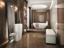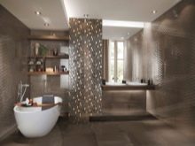 - Assurez-vous de choisir la surface qui vous convient le mieux: mate ou brillante. De temps en temps, un éblouissement excessif sur la surface des carreaux peut provoquer une irritation. Renseignez-vous auprès du designer sur le choix du carrelage en tenant compte de l'éclairage de votre maison.