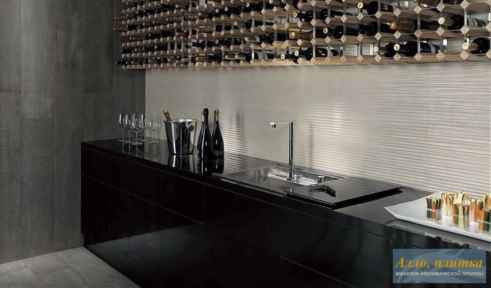 - Fap Manhattan. C'est la collection la plus populaire pour la cuisine, avec un design inhabituel et un format pratique de 10x30. Cette collection conviendra aux amateurs de style urbain. La beauté de la cuisine sera soutenue par une surface brillante et des éléments inhabituels - Manhattan Black, présenté en noir profond - créeront une atmosphère inhabituelle.