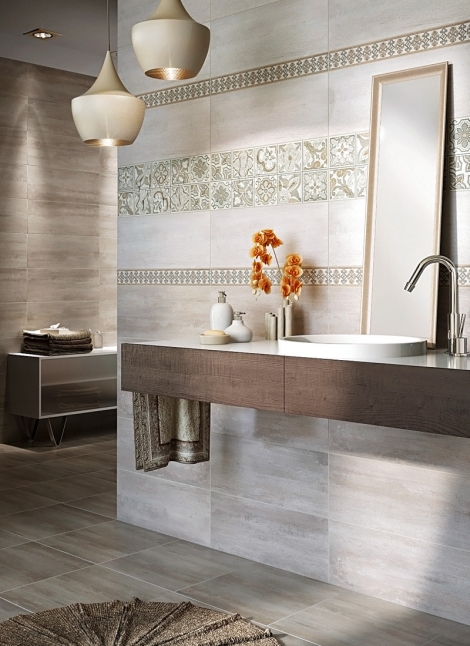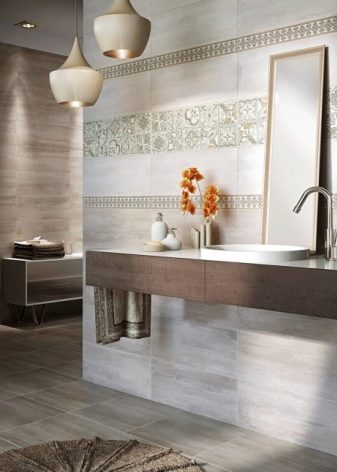 Avec l'aide de la tuile Intercerama, les consommateurs créent des intérieurs intéressants en distinguant une partie du mur, un coin de la pièce ou des fragments de formes inhabituelles. Un beau design est soutenu par diverses textures du matériau, l'utilisation d'échantillons brillants et mats.