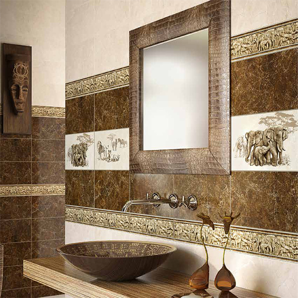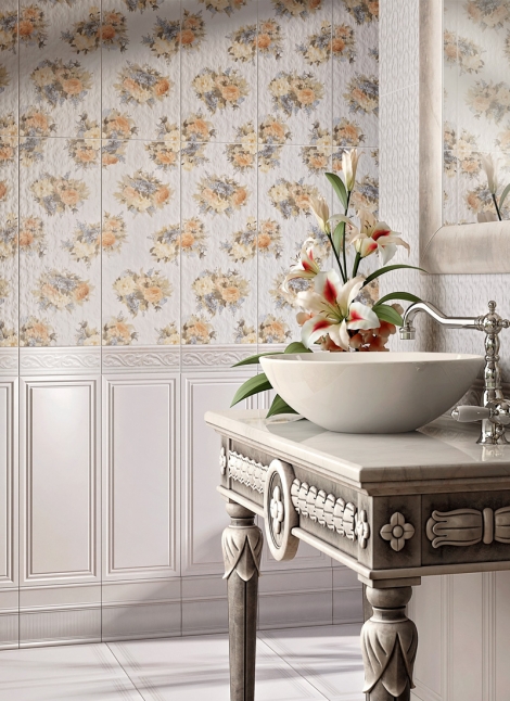Le dessin sur le carreau est appliqué à l'aide d'une impression numérique ou rotocolor, ce qui vous permet de décorer une surface en relief complexe.