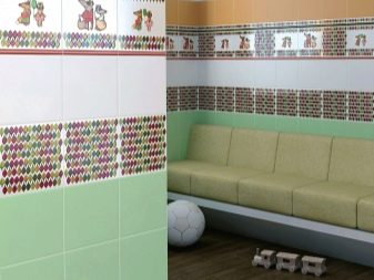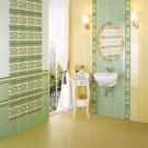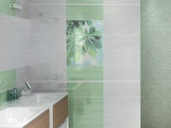 - Série "Accord" il est présenté par une tuile sous le nom de "porc". Il a un petit format et une forme rectangulaire. La surface brillante confère brillance et élégance à l'intérieur. Cette série comprend deux décors décorés de rayures verticales de différentes largeurs.
