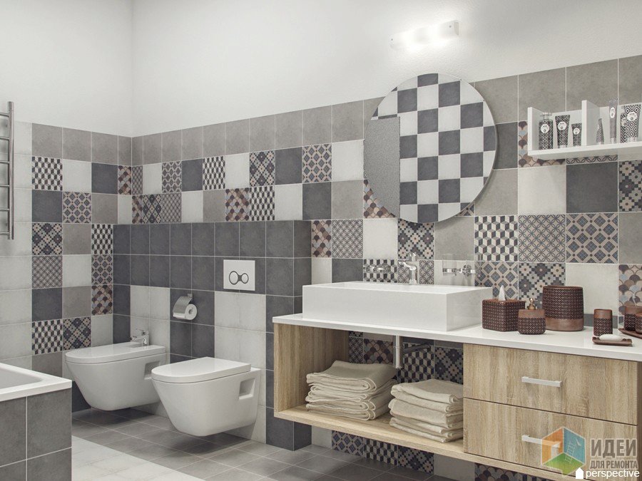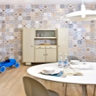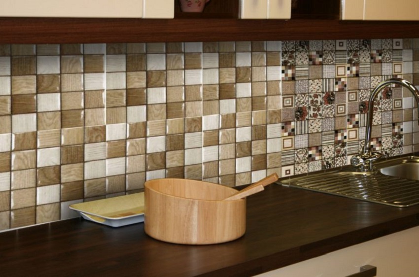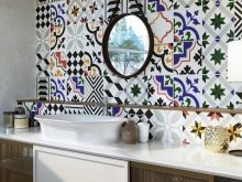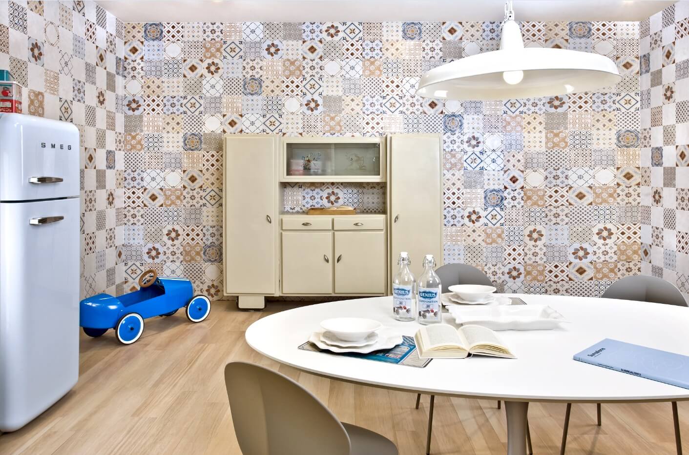 Au cours des dernières années, de plus en plus de designers ont prêté attention à style patchwork, qui est connu comme style de courtepointe. Vous pouvez utiliser des carreaux avec une impression différente, dans toutes les couleurs, mais dans le même format. Ce style vous permet de maximiser votre imagination, de créer une toile en céramique unique et attrayante.