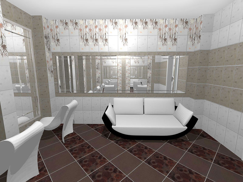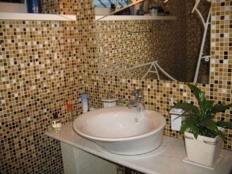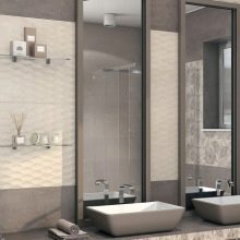 Pour une petite salle de bain, vous pouvez utiliser une tuile miroir pour l’un des murs, ce qui donnera un sentiment d’infini. Mais rappelez-vous que de telles céramiques nécessitent un entretien minutieux pour avoir toujours l’air avantageux.