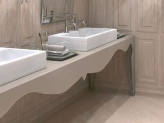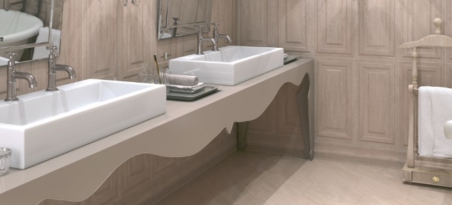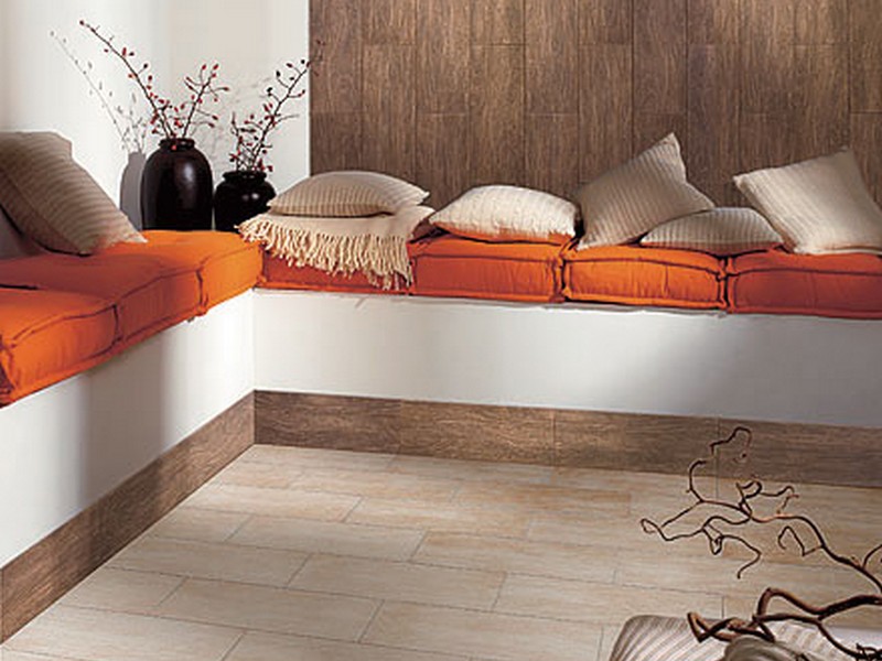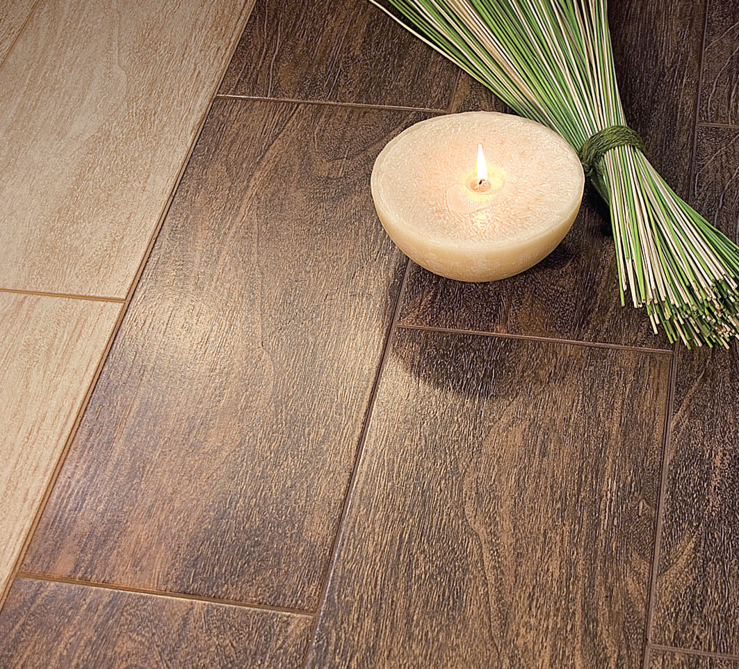 Parmi la gamme proposée de collections, on a trouvé des carreaux de céramique imitant la surface du stratifié. En apparence, il est impossible de trouver des différences mais ses performances sont bien meilleures que celles du stratifié habituel.