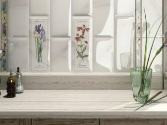La plupart des collections comprennent des carreaux rectangulaires ou carrés, car ces formes sont les plus pratiques et les plus pratiques à utiliser. Pour créer un intérieur original, les concepteurs proposent des éléments de décoration exquis, généralement réalisés dans le même format et la même forme que la mosaïque d'arrière-plan.