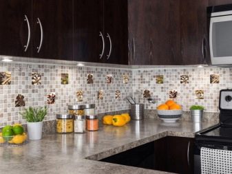 Pour la décoration du tablier de cuisine, de nombreux designers recommandent l'utilisation de carreaux verts. Cette option est parfaitement combinée avec des éléments décoratifs ornés de motifs floraux ou d'ornements.
