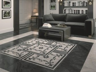 La conception des carreaux de céramique Kerama Marazzi permet d'incarner l'intérieur dans n'importe quelle direction de style. Les carreaux de marbre ajouteront luxe et sophistication à l'intérieur. Il est idéal pour créer un sol résistant avec une longue durée de vie. Les carreaux sous la brique, l'ardoise ou le béton peuvent modifier la conception de la pièce.