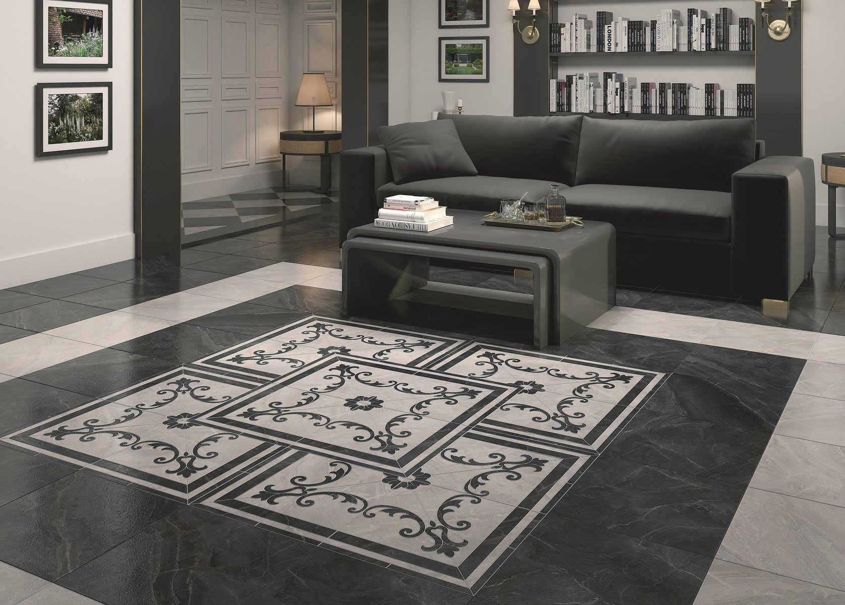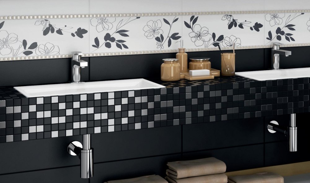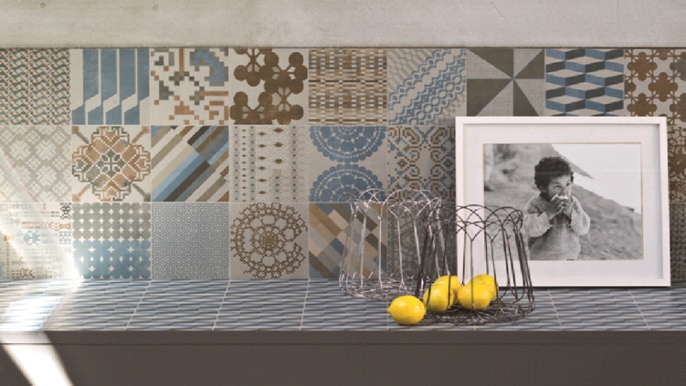 - Série "Atelier" convient à la décoration de la cuisine ou de la salle de bain. Les céramiques de fond sont présentées en quatre couleurs: blanc, cendre, noir et graphite. Les éléments décoratifs de la série Atelier sont décorés de motifs géométriques étonnants. Des décors noirs et blancs et colorés forment des panneaux étonnants.