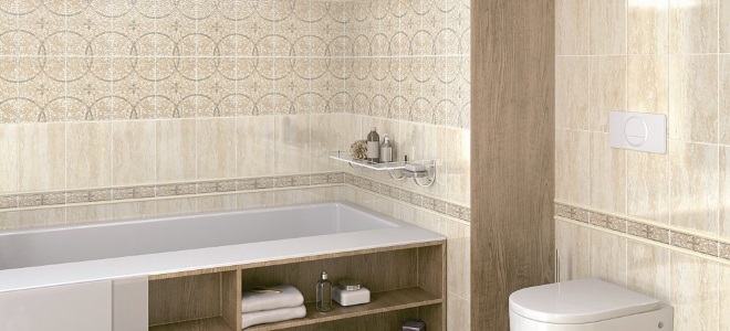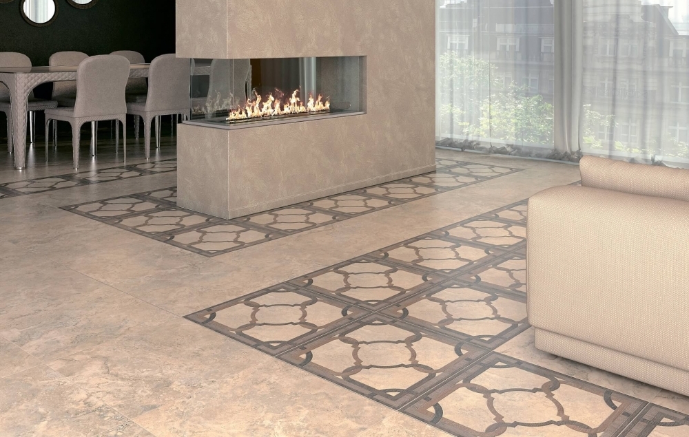 Un excellent exemple est série "travertin". Les carreaux de céramique reflètent parfaitement la texture de ce matériau naturel, qui a été utilisé dans la construction du Colisée romain, la cathédrale Saint-Pierre au Vatican.La présence d'éléments décoratifs permet de décorer l'intérieur, de lui donner de la richesse, de transmettre l'époque des temps anciens.