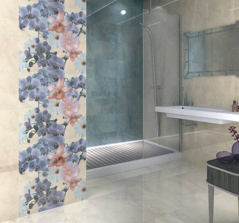 - Série de baccara tendresse et élégance différentes. Le carrelage imite parfaitement la surface du marbre, il est donc magnifique, élégant et riche. Le décor en forme de mosaïque ou d’impression florale vous permet de diluer le revêtement de fond de couleur beige ou beige foncé.