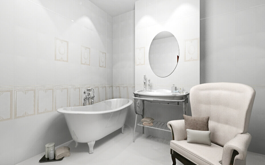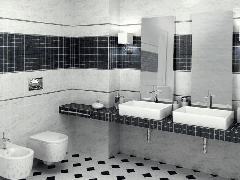 Pour créer direction de style classique à l'intérieur, il vaut la peine de choisir des collections où toute l'attention est portée sur une tuile de fond monochrome et où le décor est presque absent. Les carreaux blancs et noirs sont toujours à la mode.