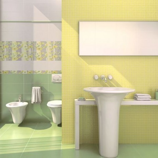 - Pour faire face à de petites pièces, il convient de choisir une poterie de petit format. Mosaïque lumineuse et à la mode de couleurs claires avec un petit motif. Cette sélection élargira visuellement la pièce.