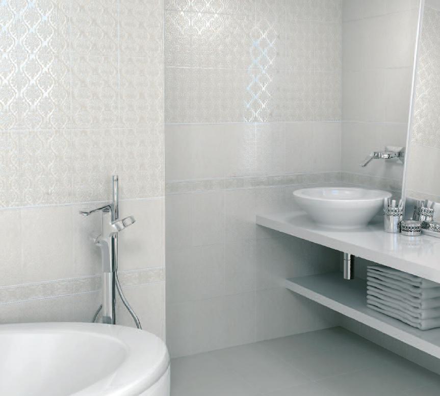 - Série Alma semble inhabituel et élégant.Le carrelage mural est présenté en blanc. Il est fabriqué en deux versions - traduit la texture de la pierre et la surface de la chape. La décoration de la série est un décor avec une surface brillante, faite sur un thème végétal.