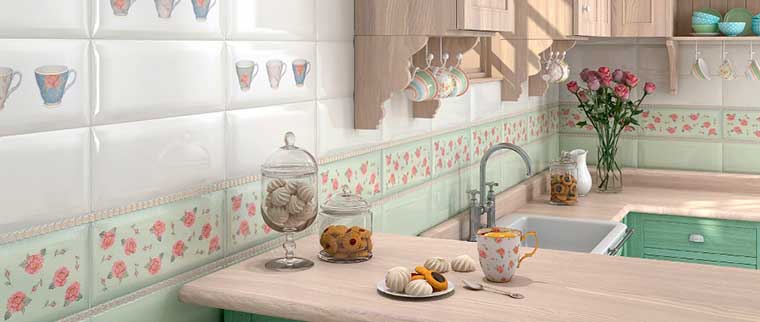 Selon l'orientation du style choisi, vous pouvez faire une sélection de collections de marques. Pour décorer la cuisine Style provençal Il est nécessaire de privilégier les céramiques dans les tons bleu et bleu.