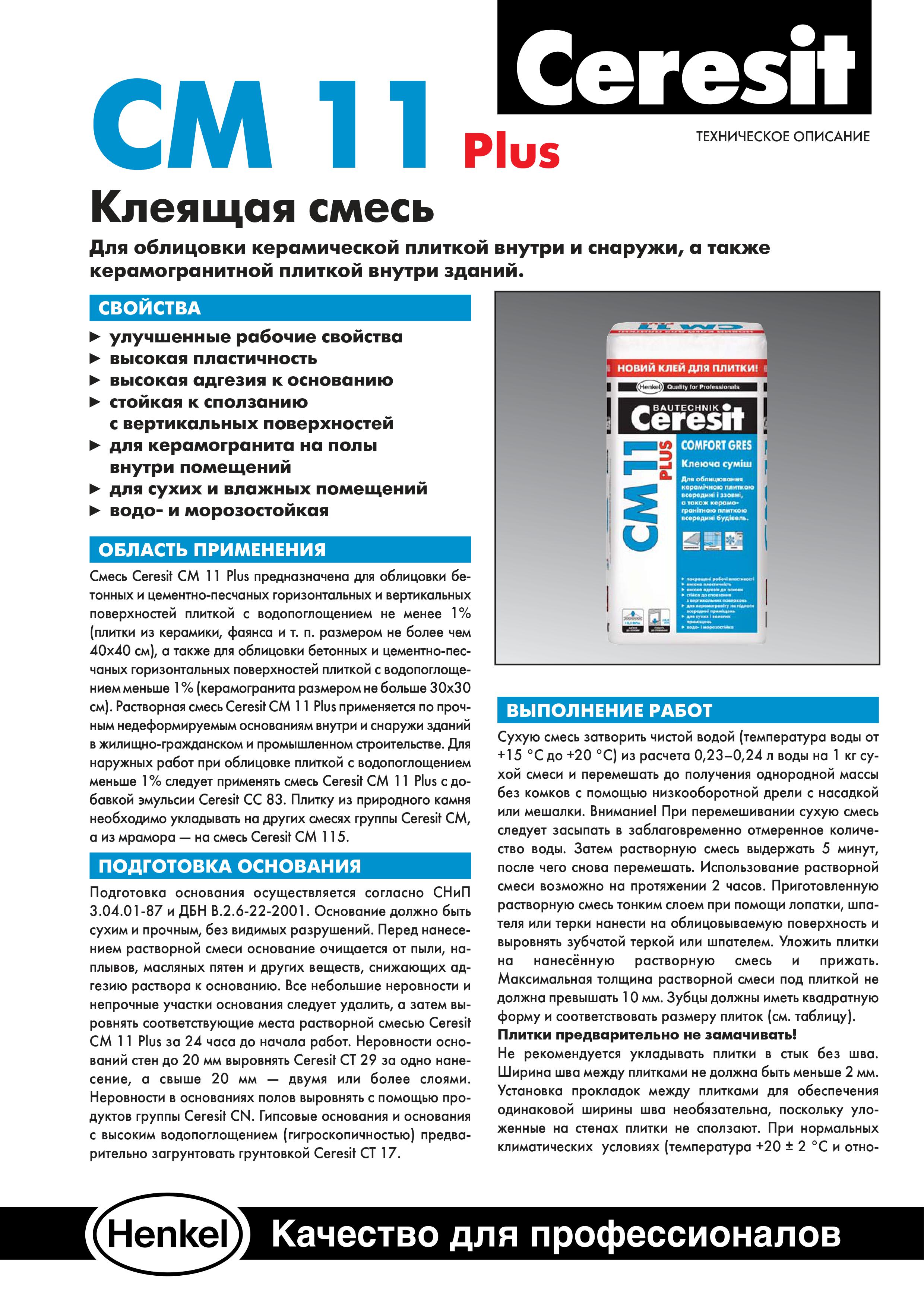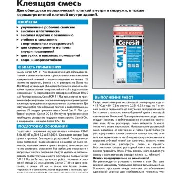 La colle à carrelage Ceresit, produite par la société du même nom, est considérée comme l'un des meilleurs composés de revêtement sur le marché européen. Les produits sont fabriqués sur des équipements de haute technologie de la société allemande Henkel et répondent aux exigences les plus strictes imposées aux fabricants de matériaux de construction et de finition.
