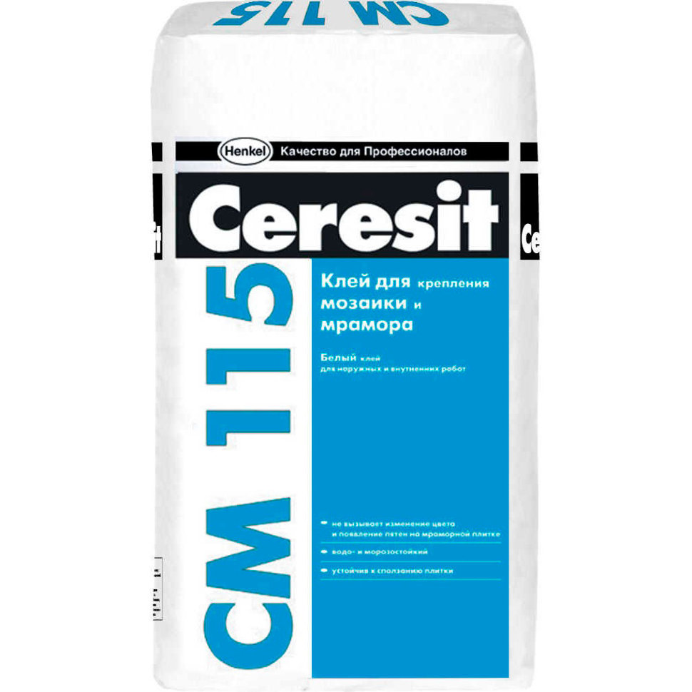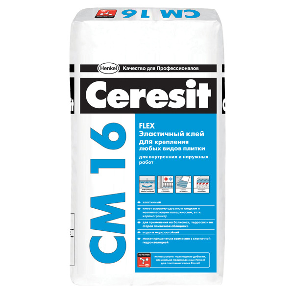 - Ceresit SM-16. Composition spécialisée convenant à la finition des salles de bains, des piscines et des toilettes. La colle est utilisée pour l'installation de dalles de marbre, de verre, de pierre, ainsi que de produits de clinker et de carrelage. La composition n’a pas peur de l’expansion linéaire des carreaux de céramique et des charges lourdes.En raison de sa grande résistance, l'adhésif peut être utilisé pour former un sol en carreaux dans des endroits très fréquentés par les piétons.