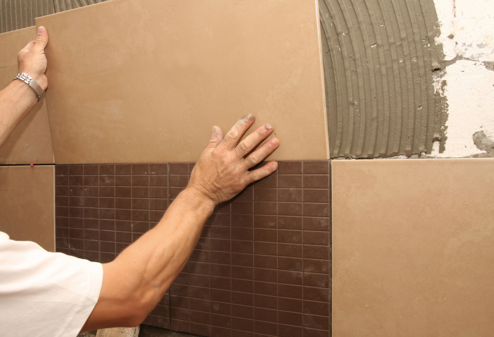- Bonne adhésion La composition procure une forte adhérence avec une base rugueuse et avec le carreau posé dessus.La colle peut être appliquée sur toutes les bases, y compris les plaques de plâtre et de bois. En raison des propriétés de liaison élevées de la composition, conserve bien les plaques standard et de grandes dimensions, ce qui est très pratique pour former une combinaison de surfaces constituées de plaques de différentes tailles. La structure est pratique pour travailler sur des surfaces verticales.