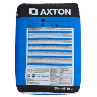 - Compositions de marque Axton vendu sous forme de mélanges de ciment en sacs de 25 kg. Ils sont idéaux pour la pose de carreaux de porcelaine, de mosaïques et de pierres, car ils sont fiables et résistants. La composition s'empare rapidement en cours de collage.