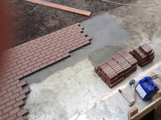 - Un mortier de ciment est nécessaire pour les dalles de pavage. Cependant, pour une fixation supplémentaire, il est souvent utilisé un adhésif spécialement conçu pour une utilisation en extérieur. Cela rendra les pistes plus durables.
