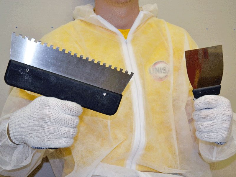 - Pendant le fonctionnement, différents outils peuvent également être utilisés, ce qui affecte également la consommation de colle. Donc, si vous l'appliquez avec une spatule en V ou en U, une consommation plus économique sera fournie. Les spatules à dents carrées consomment beaucoup de colle. Plus les dents sont grandes, plus la dépense sera importante.