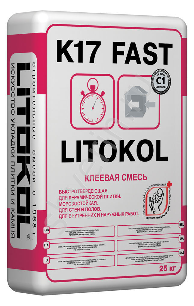 - Fabricant Litokol Il représente des formulations de haute qualité, mais leur prix est assez élevé. Le prix d'un pack en moyenne 1500-1800 roubles par pack. C'est un type de colle imperméable. Le fabricant russe compte parmi les avantages de la composition adhésive et appelle le fait que la composition diluée ne durcit pas dans le réservoir jusqu'à 8 heures. Un examen des compositions de cette marque montre qu’elles sont principalement destinées au carrelage et au grès cérame.