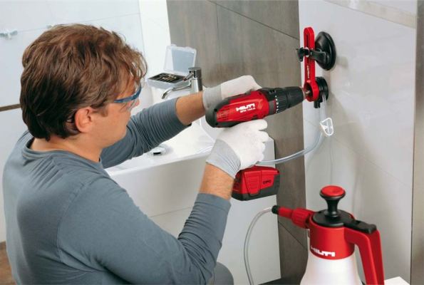 Les manipulations avec une perceuse impliquent la présence de certaines expériences et compétences. Cependant si vous collez du papier adhésif sur la buse, la couronne ne glissera pas sur une surface lisse.