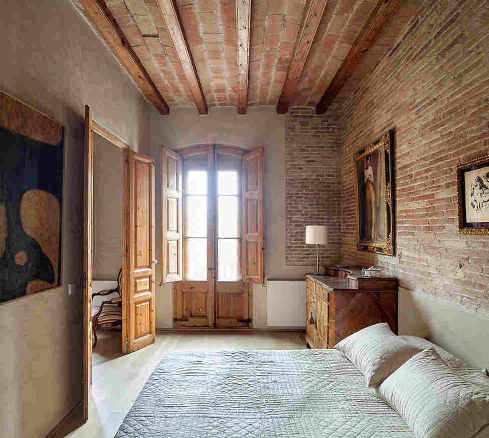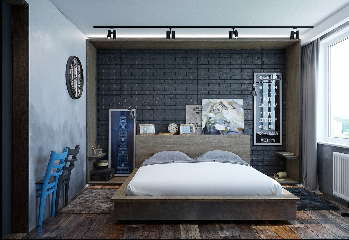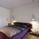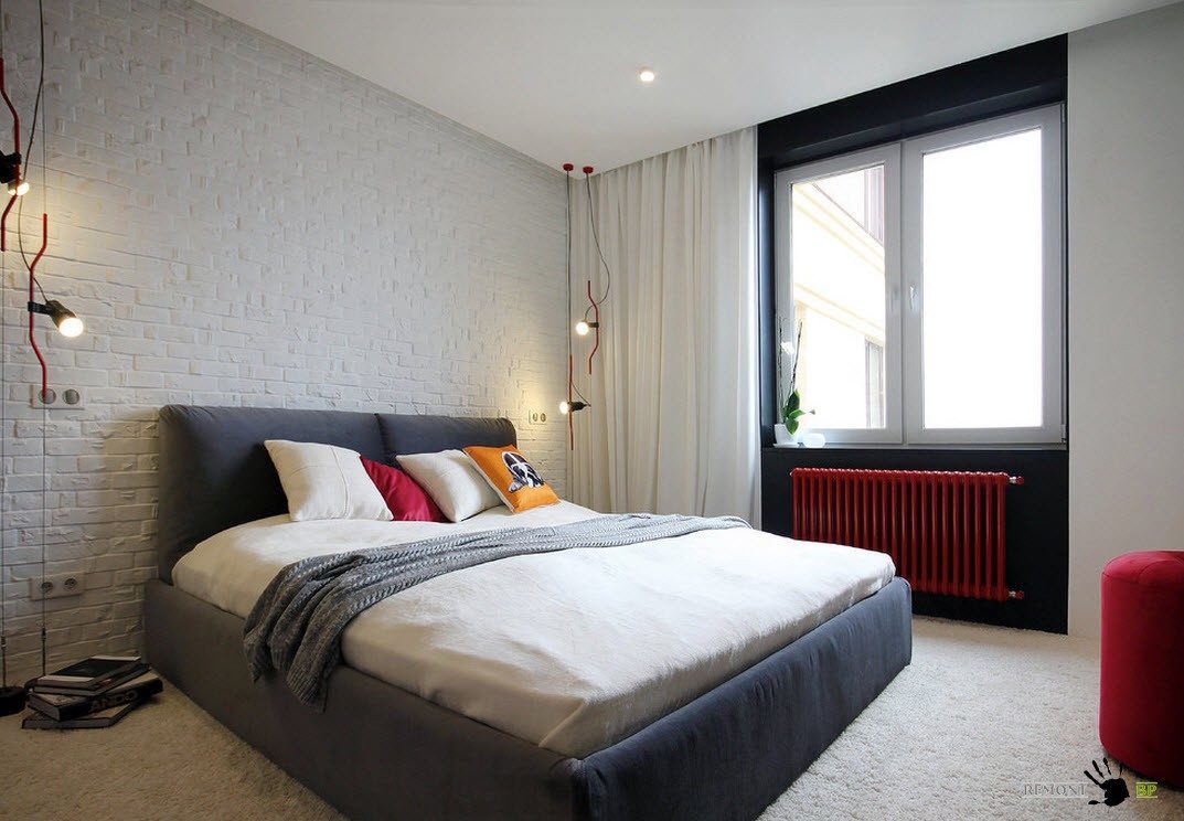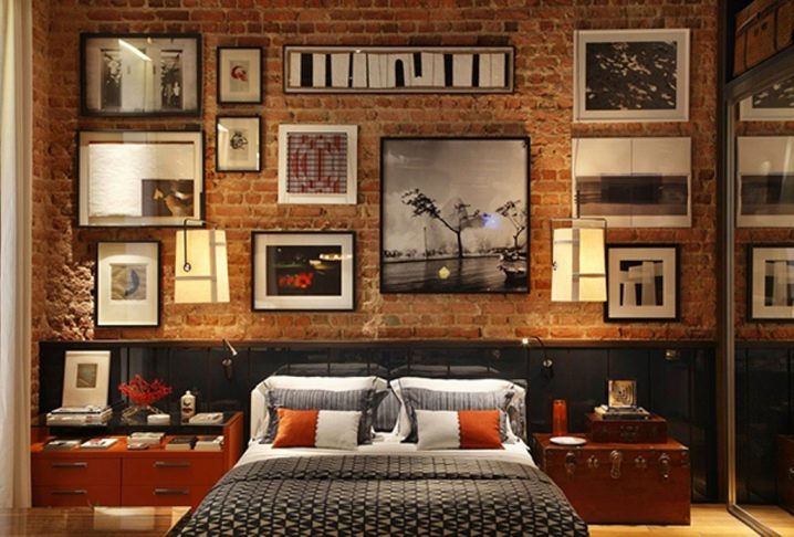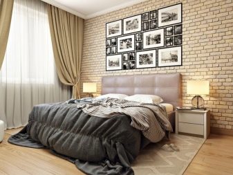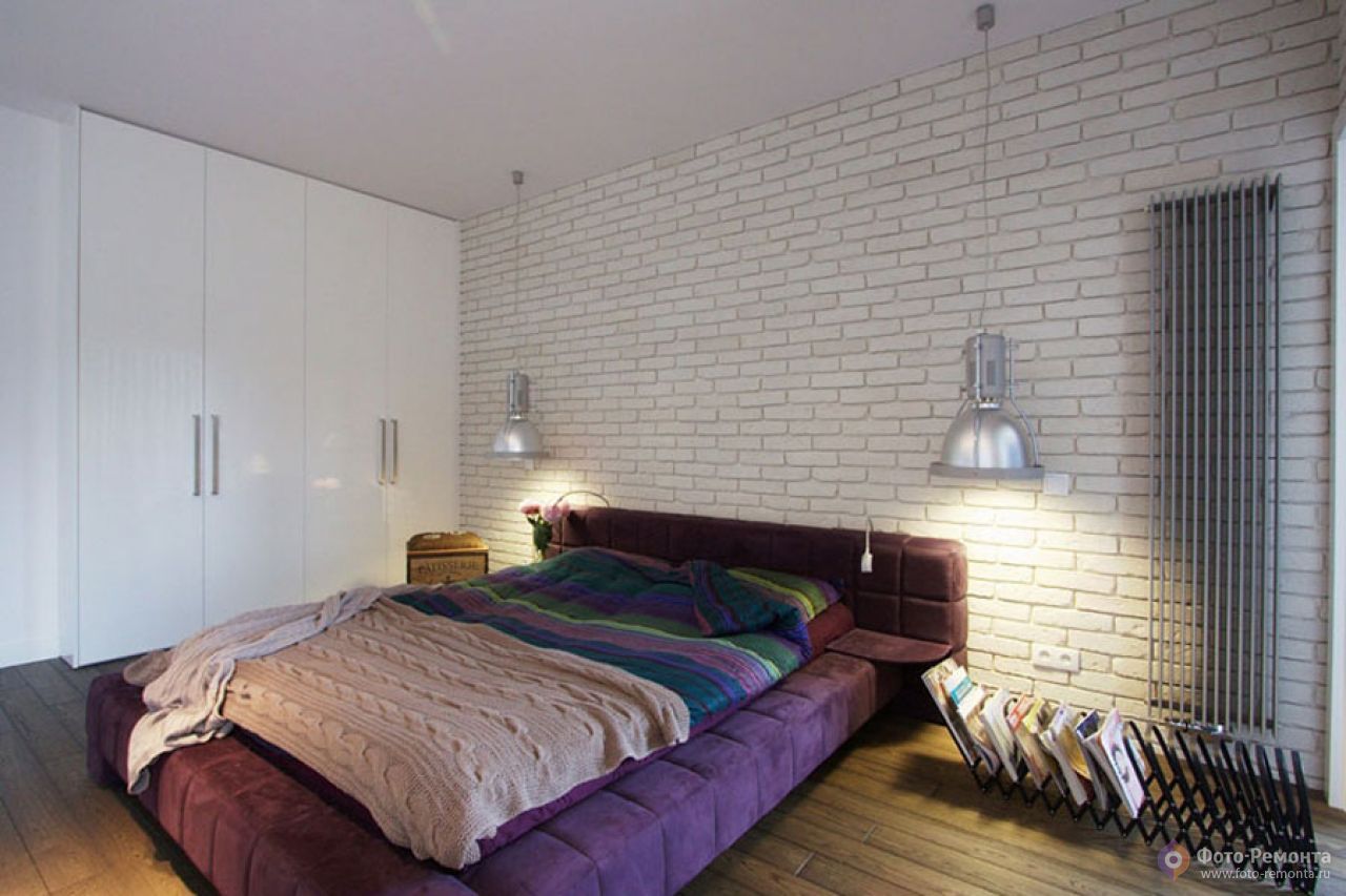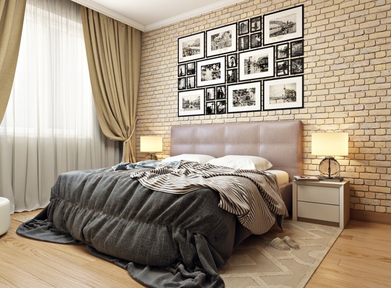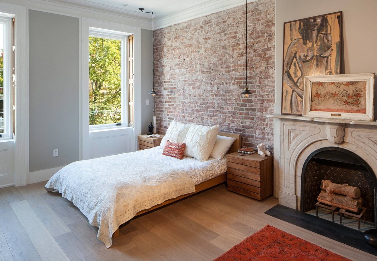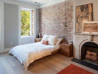 Si toutefois, une fois encore, vous passez des détails de l'intérieur général à des pièces spécifiques, il convient de rappeler que la tuile de brique sera superbe juste derrière la tête de lit.