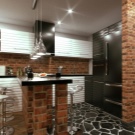 Depuis un certain temps déjà, le carrelage brillant sous une brique qui décore la cuisine gagne en popularité. Grâce à la surface brillante, il est facile à nettoyer.