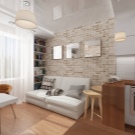 Tuile sous la brique, peu importe quel matériau a été la base du produit, Il va bien avec le papier peint, les plinthes et autres matériaux de construction couramment utilisés pour le carrelage intérieur des murs et des sols.. De ce fait, les concepteurs ouvrent un vaste champ de fantaisie: par exemple, lors de la division d'une pièce en plusieurs zones, la tuile permettra d'ajouter des accents plus lumineux à la pièce. Cela comprend également un grand choix de couleurs, de tons et de textures.