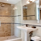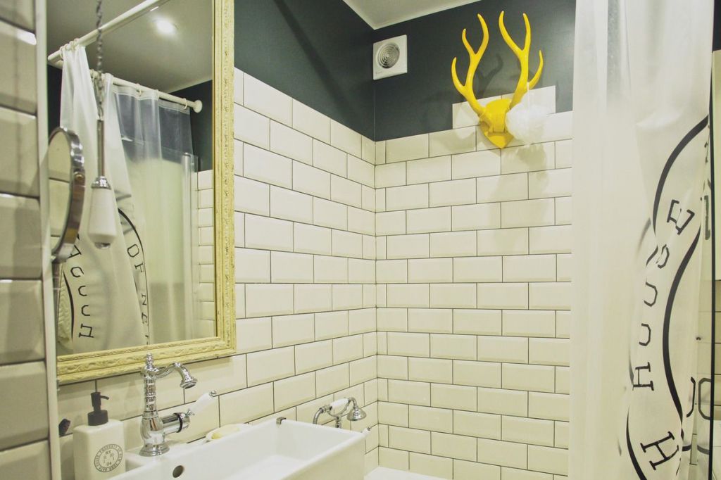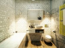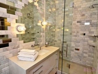 Dans la conception d'une salle de bains ou d'une salle de douche, un motif en brique peut sembler un peu étrange, mais avec l'approche appropriée, il peut constituer une solution de conception unique. De matériaux, c'est totalement inacceptable dans ce cas gypse, absorbant une énorme quantité d'humidité et susceptible de se détruire. La meilleure option serait une tuile ou, si le propriétaire est prêt pour le coût élevé des réparations, vous pouvez arranger les murs avec des carreaux de verre.