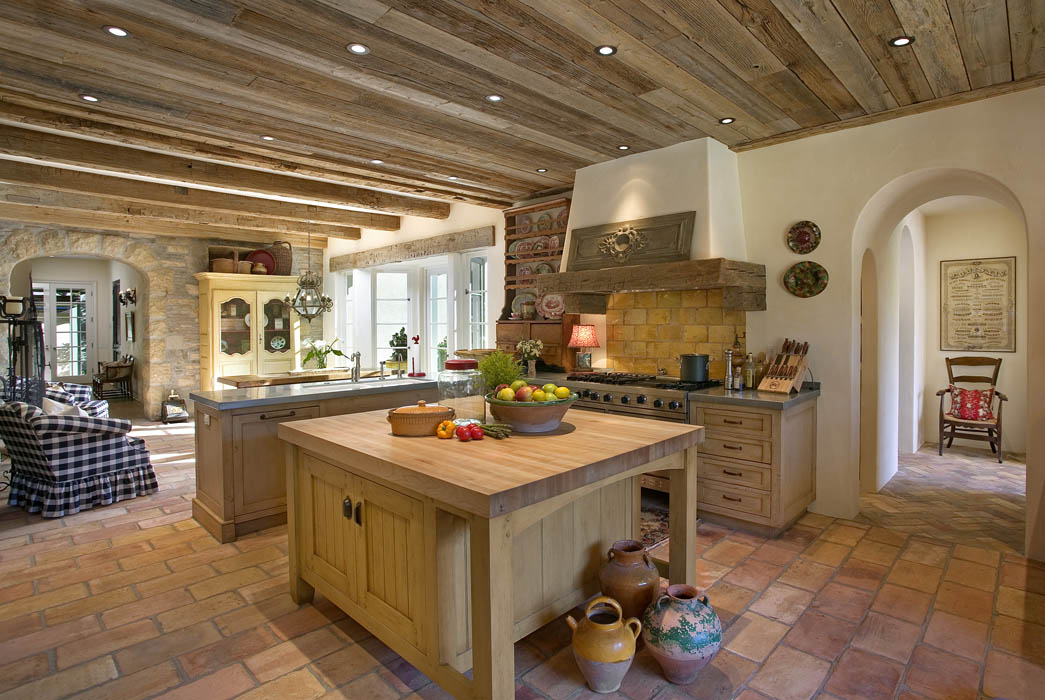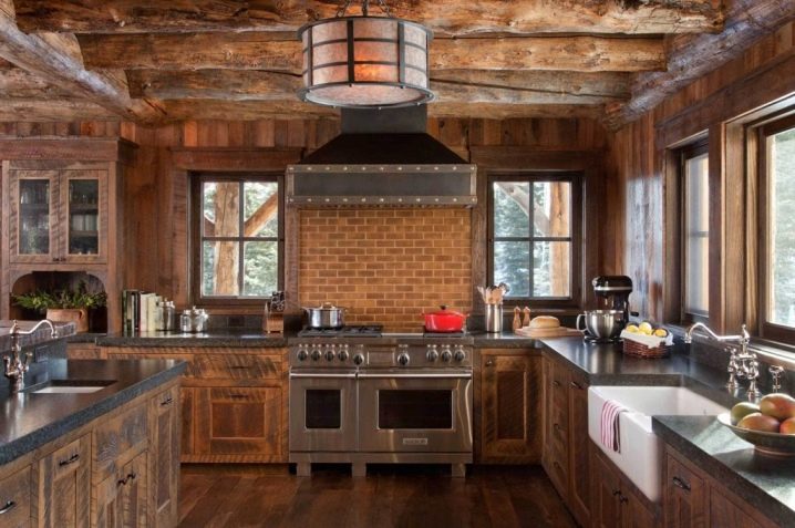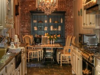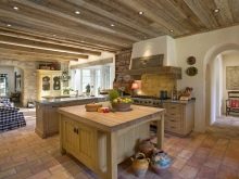 En ce qui concerne le style campagnard ou pays, il est idéal, par exemple, pour la cuisine. Un des murs peut être carrelé avec des carreaux en brique, poser du linoléum imitant du bois ou du stratifié sur le sol, ajouter du mobilier en bois et quelques détails clairs à la pièce: punaises colorées à la main, serviettes brodées, paniers en osier pour des bonbons ou du pain.