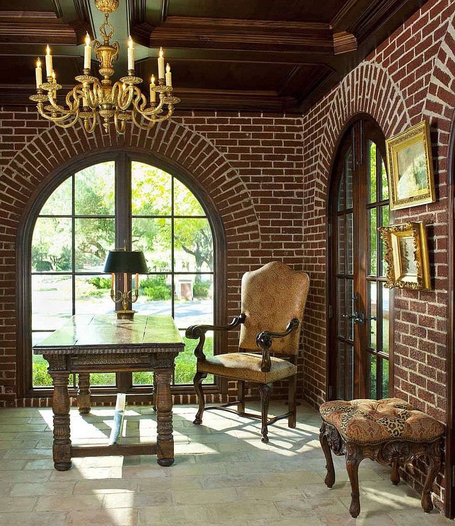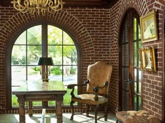 Les carreaux de brique iront également dans le style gothique ou néo-gothique. Il est nécessaire de choisir les bonnes couleurs et texture et, en regardant la pièce,ce sera difficile à déterminer: s'agit-il d'une maison moderne ou d'un château médiéval?