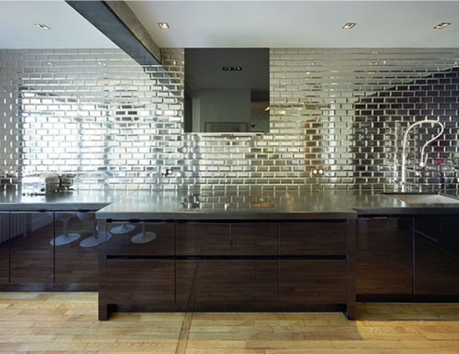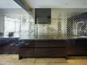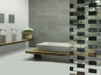 Contrairement aux miroirs ordinaires, un tel produit se caractérise par une durabilité accrue et peut augmenter visuellement la taille d'une pièce, ce qui est très important pour les petites pièces. Une autre chose est que tout le monde ne peut pas se sentir à l'aise dans une pièce dans laquelle un ou plusieurs murs sont alignés avec un tel «miroir». Mais Si vous utilisez une tuile miroir pour revêtir des sections individuelles des murs, vous pouvez obtenir un effet incroyable..