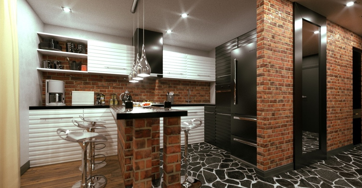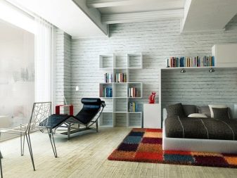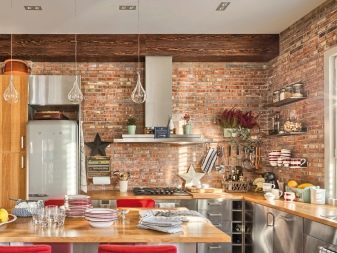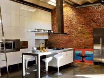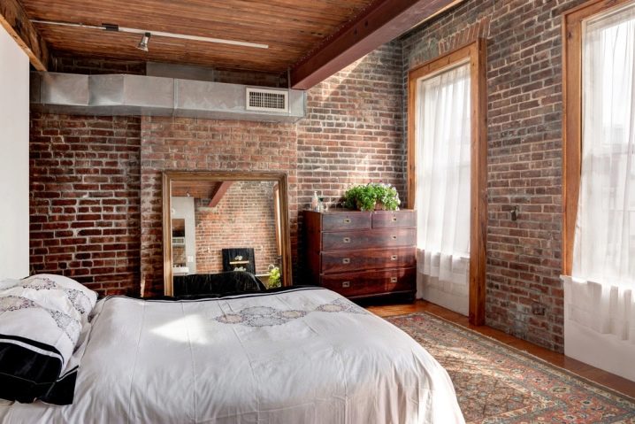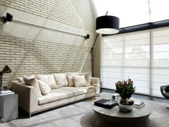 Dans les grandes et spacieuses pièces (en particulier dans les lofts et les studios), la conception de tous les murs de ce style serait appropriée.cependant, dans les pièces étroites et compactes, cela peut avoir un effet pressant. Dans ce cas, il vaut la peine de confectionner des carreaux en brique avec certaines parties de la pièce ou, dans les cas extrêmes, de privilégier les produits aux teintes claires.