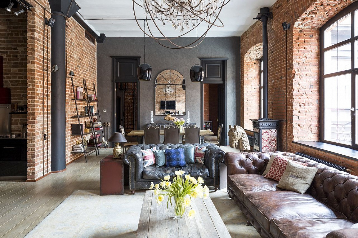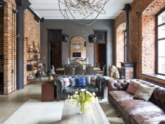 Il est souvent habituel de donner à la maçonnerie l’effet de l’antiquité en vieillissant artificiellement la tuile, en y ajoutant une variété de copeaux et de fissures.En combinaison avec une variété d'éléments industriels (tuyaux métalliques sortant des murs, escaliers en fer servant de détails de décoration, fils et luminaires à la décoration inhabituelle), une composition étonnante de style loft sera créée.
