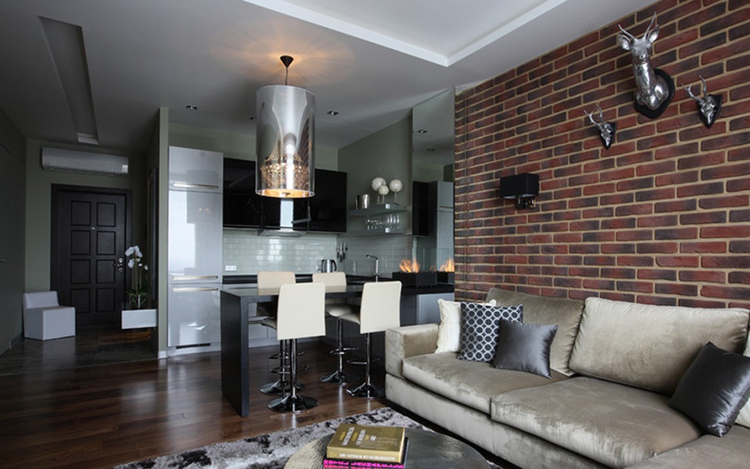 En fonction du design d'intérieur qui va être fait, les carreaux de brique peuvent être décorés comme la pièce entière et l'un des murs ou seulement une zone séparée.