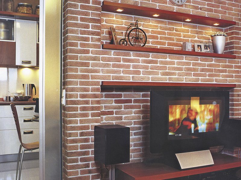 Il sera intéressant de rechercher des étagères intégrées à l'intérieur de la «maçonnerie». Les niches et les niches en mosaïque sont très intéressantes et donner au mur un sentiment d'intégrité. Pour cette raison, les carreaux de brique auront une allure très élégante dans le design du meuble.