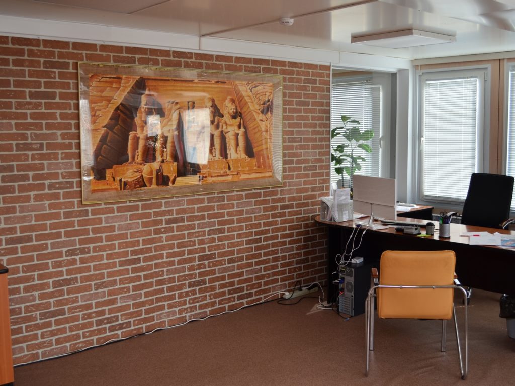 Vue d'ensemble de l'intérieur avec un placage de brique - dans la vidéo suivante.