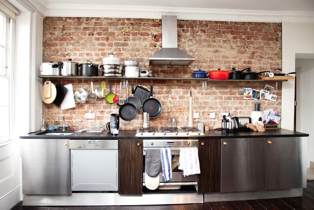 Si nous ajoutons à cette technologie moderne (poêle à revêtement métallique, télévision, etc.), le design deviendra vraiment fascinant.. En même temps, l'industrialisme excessif est facilement dilué avec un ou deux éléments décoratifs: des coussins décoratifs, des plantes et des tapis moelleux.