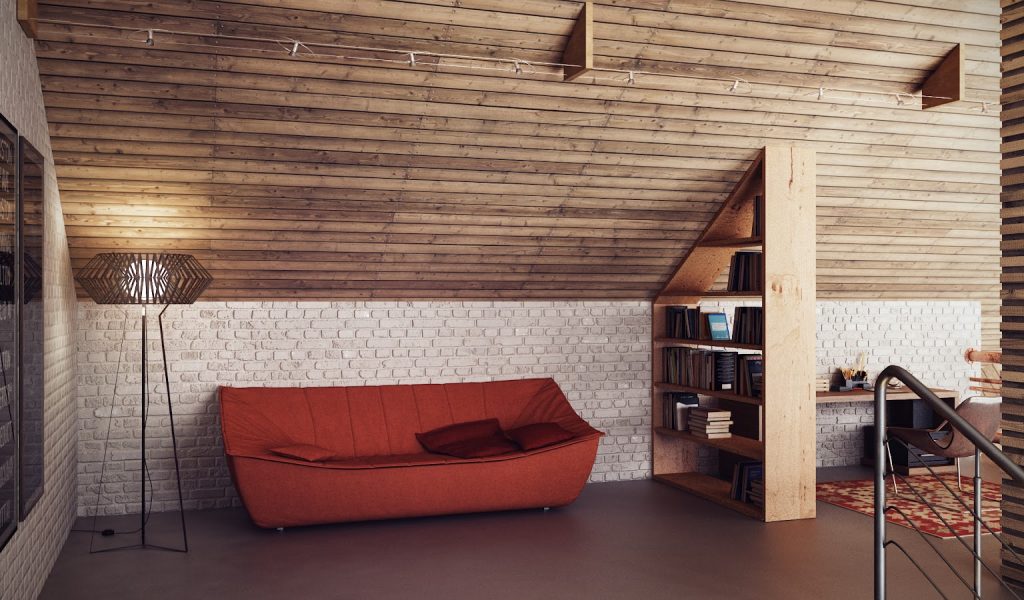 Toutefois, il serait tout aussi intéressant d’examiner une option légèrement différente: les hauts plafonds avec poutres en bois et murs en briques associés à un mobilier moderne. Ce contraste de composition donnera à la pièce le sentiment de combiner les époques et de la rendre très confortable.