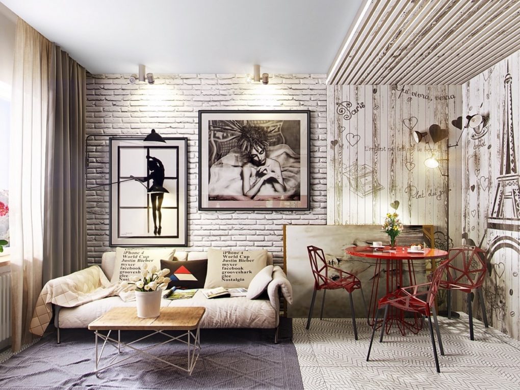 La conception d'appartements de style loft convient aux jeunes créatifs, dont les finances sont plutôt modestes: avec des dépenses minimes pour les réparations, vous pouvez créer une atmosphère chaleureuse et inhabituelle. Pour les couples avec enfants, cette conception risque d’être quelque peu inappropriée.